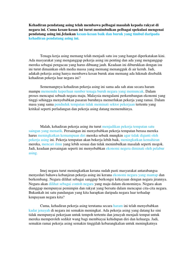 Contoh Karangan Implikasj Pendatang Asing Get link. Kedutaan asing juga enggan membiayai kos penghantaran pulang.
